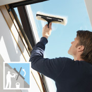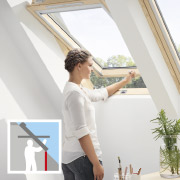Det nye, glatte galvaniserte håndtaket nederst er utformet for enkel og komfortabel åpning og lukking av høyt monterte vinduer. For å vaske vinduet, drei det 180˚ og skyv låsebolten inn i karmen. Da har du begge hendene frie.