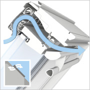 Slipp inn frisk luft uten å åpne vinduet og sørg for et sunt inneklima – også på regnværsdager. Den unike integrerte VELUX-ventilasjonsklaffen slipper inn frisk luft selv når vinduet er lukket.